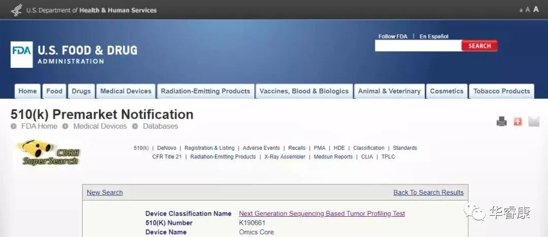On November 12, 2019, the FDA approved NantHealth's Omics Core, the first clinical genetic test based on whole exome sequencing (WES), for 510 (k) approval. It is also the first FDA-approved tumor mutation load (TMB) assay based on whole exome sequencing (WES).